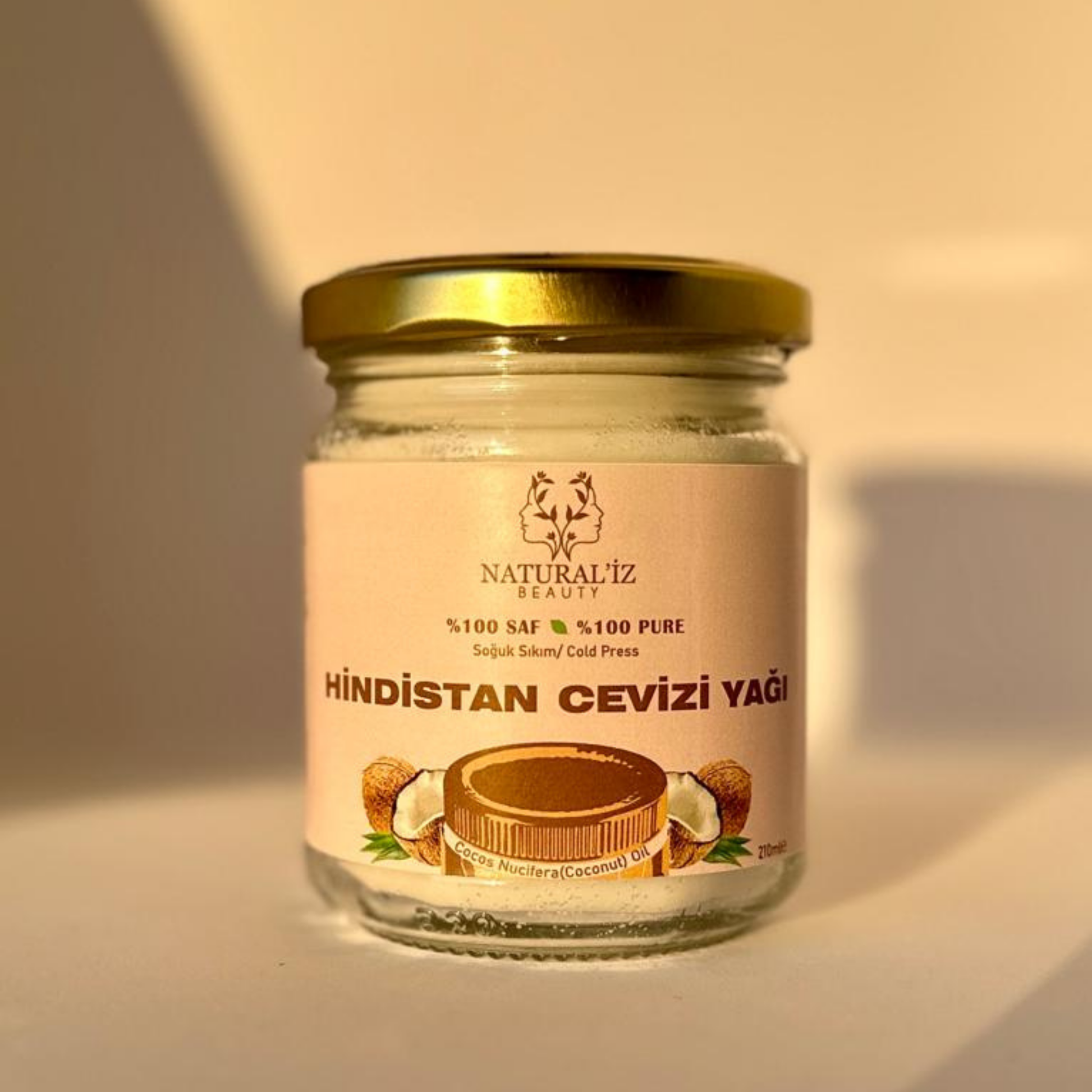 Naturaliz Beauty Hindistan Cevizi Yağı, hiçbir kimyasal çözüm kullanmadan soğuk sıkım yoluyla elde edilir.